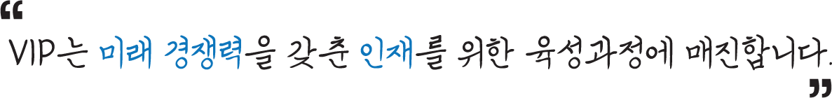 VIP는 새로운 직원이 보다 빠르게 적응할 수 있도록 멘토링 등 적극적으로 지원하고 있습니다. -