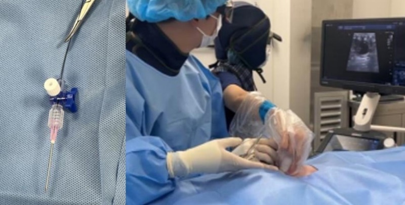 시술을 위해 초음파와 투시기를 준비하고 멸균합니다.