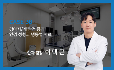 강아지 당뇨성 백내장 제거 및 인공 수정체 삽입, 시력저하 치료강아지 당뇨성 백내장 제거 및 인공 수정체 삽입 수술 치료동물 이름 : 놀란(가명) 나이 : 8성별 : 중성화 수컷품종 : 포메라니안주요 증상 : 백내장, 시력 저하■ 내원 당시의 상태놀란이는 타 원에서 백내장이 의심되어 안과 정밀검진 필요하다고 본원으로 의뢰된 환자입니다.문진상 요즘 들어 보행 중 부딪히고 잘 안 움직인다고 말씀하셨습니다.■ 검사 방법, 검사 결과 백내장 및 시력 저하 원인을 파악하기 위한 안과 검사를 진행했습니다.1. 신경 검사 (오른쪽 눈, 왼쪽 눈)- 위협 반사[menace response] : (약함, 약함)- 강한 빛 반사(dazzle reflex) : (+,+)- 동공 빛반사 (Pupillary light reflex) : (+,+)- 보행 검사 : 어두운 공간에서 망설이고 움직이려 하지 않음.2. 안과 검사- 눈물량 검사(STT) : (19,20) -> 정상 범위 15~25- 안압 검사(IOP) : (12mmHg, 11mmHg) -> 정상- 각막 형광 검사 (Fluorescein dye test) : 정상오른쪽 눈왼쪽 눈- 세극등 검사 (Slit lamp biomicroscopy) : 양쪽 눈 미성숙 백내장 (2기 백내장)오른쪽 눈왼쪽 눈 - 안구 초음파 검사 : 양쪽 눈 팽륜성 백내장 (수정체 부피 증가), 수정체 후낭은 이상 없음.- 망막 전위도 검사 : 양쪽 눈 망막 기능 정상검사 결과 양쪽 눈 백내장이 확인됐습니다. 백내장 정도는 현재 미성숙 백내장으로 2기입니다. 거의 3기 성숙 백내장까지 악화된 상태로 시력에 심각한 지장을 주고 있었습니다.백내장이 생긴 원인은 놀란이의 기저질환인 당뇨 때문으로 보입니다. 개가 당뇨병에 걸리는 경우, 1년 이내 75% 정도의 개체에서 백내장이 발생합니다. 강아지 당뇨성 백내장은 악화 속도가 굉장히 빠르고 수정체가 부풀어 파열될 수도 있기 때문에 조기 진단과 치료가 중요합니다. ■ 수술 및 치료 방법현재 백내장을 없앨 수 있는 방법은 백내장 제거 수술이 유일합니다. 그렇기 때문에 놀란이가 시력을 회복하기 위해서는 백내장 수술로 백내장을 제거하는 방법뿐입니다.당뇨병 관리 후 수술이 가능한 전신상태가 됐을 때 수술을 하기로 했습니다.* 양쪽 눈 백내장 제거 및 인공 수정체 삽입술■ 수술 결과회복된 오른쪽 눈회복된 왼쪽 눈 수술 후 5주차. 백내장이 제거되고 정상 시력으로 회복했습니다. 놀란이는 백내장 수술 후 정상적인 시력을 되찾았습니다.백내장 수술을 하는 당뇨병 환자의 경우 수술 직후 혈당 및 내과적 관리가 매우 중요합니다. 강아지 당뇨성 백내장 수술이 필요한 상황이시라면 수술 후 혈당 관리와 내과적 관리를 돕고 안과, 마취 전공 수의사가 협진 하여 안전하게 수술을 하는지를 참고하시어 진행하시기 바랍니다. VIP동물의료센터 청담점 안과 과장 이택근